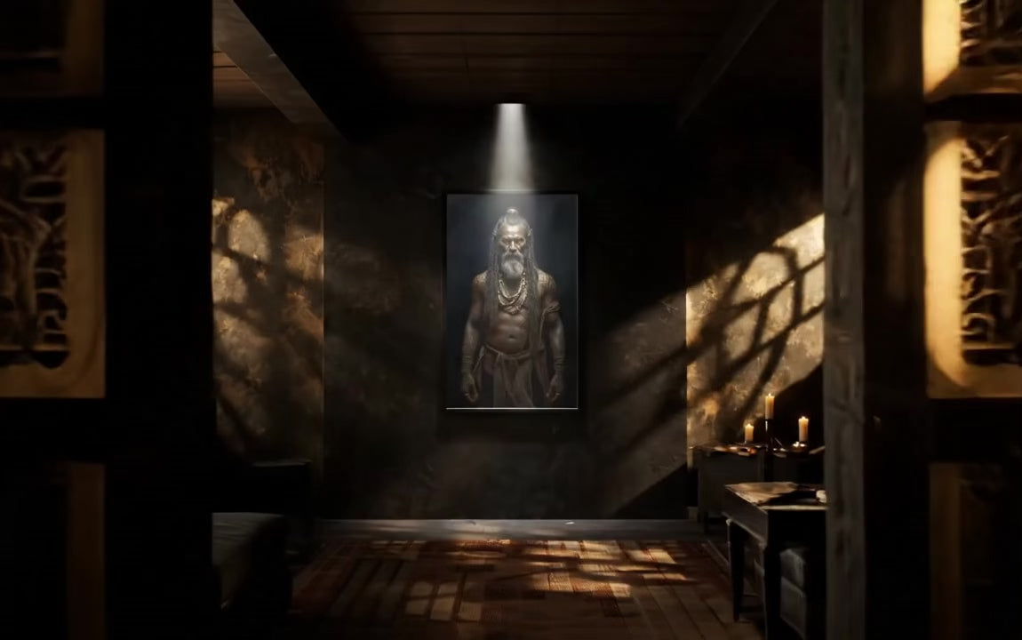 - Motiv: Dark Boho Krieger – detailliertes, kraftvolles Porträt